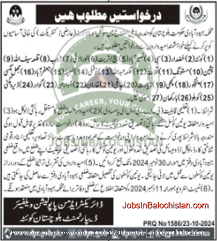 Population Social Welfare Department has 2024 jobs in Balochistan. The vacancies have been announced in Balochistan through the Jang Newspaper. The hiring process will follow departmental guidelines. Candidates from Balochistan who satisfy the requirements can now apply for the vacancies that are listed in the advertisement, Female, below. After the recruitment process is complete, eligible applicants can apply using the organization’s established procedure and receive these Jobs in Balochistan in 2024