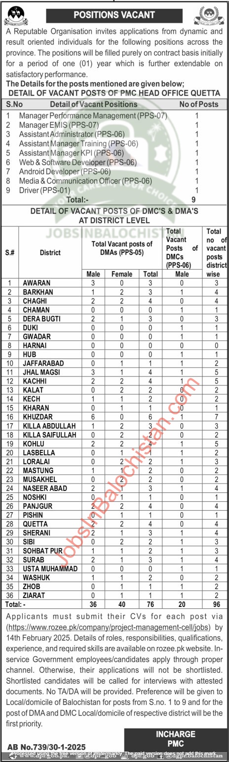 - Submit your CVs for each post via https://www.rozee.pk/company/project-management-cell/jobs before 14 February 2025