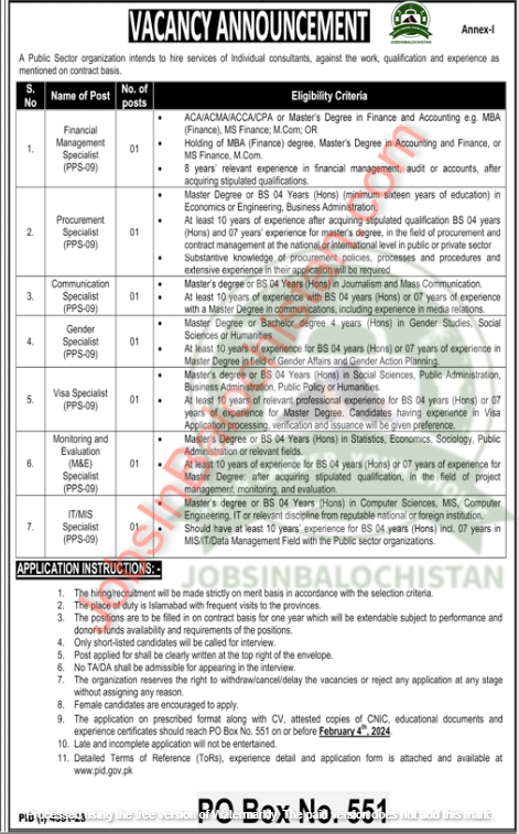 11. Detailed Terms of Reference (ToRs), experience detail and application form is attached and available at www.pid.gov.pk