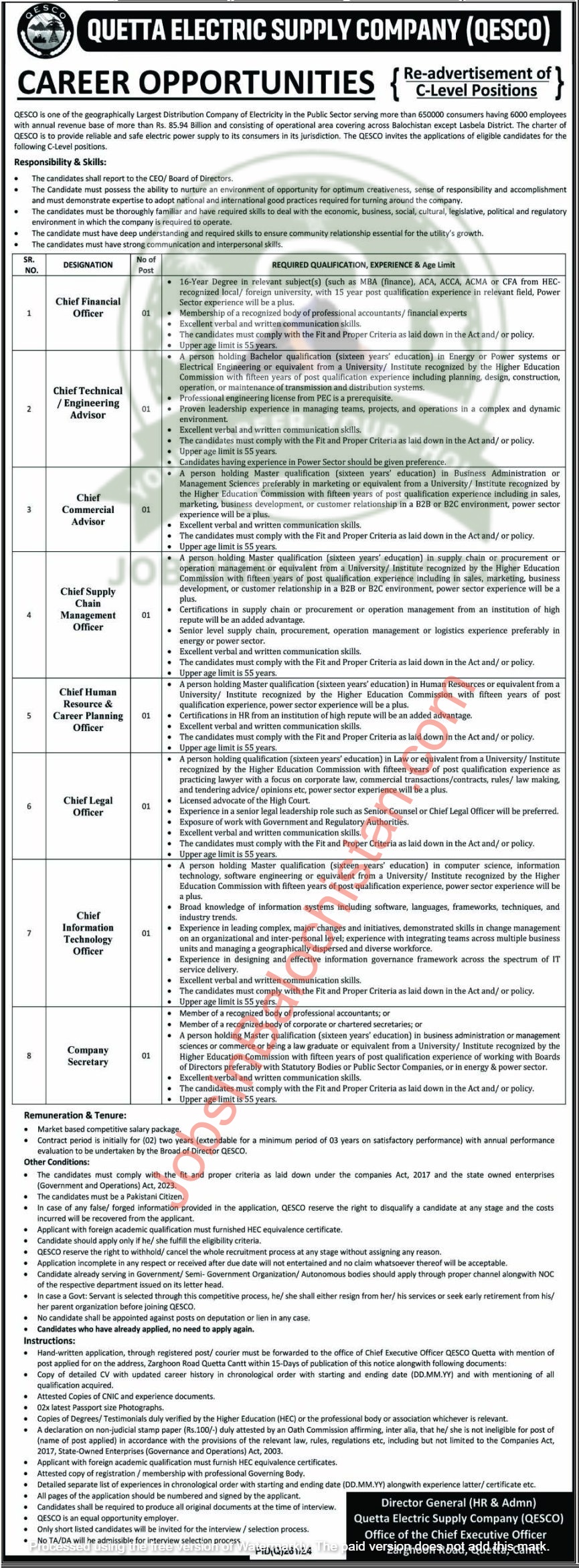 - Send your documents to the office of 👉 Chief Executive Officer QESCO Quetta, Address: Zarghoon Road Quetta cantt.
