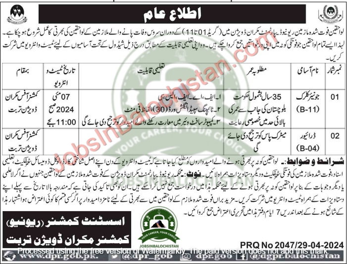 - Location of Test / Interveiw of Relatives of Deceased Employees Revenue Department 👉 Commissioner officer mekran Devesion Turbat at morning 11 oclock.