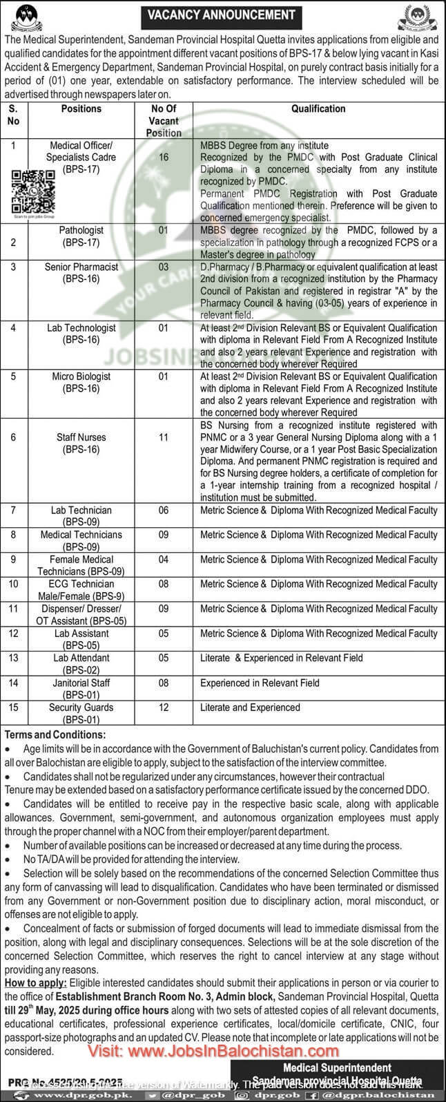 - Send your documents to the office of 👉 Establishment Branch Room No. 3, Admin block sandeman Provincial Hospital, Quetta.