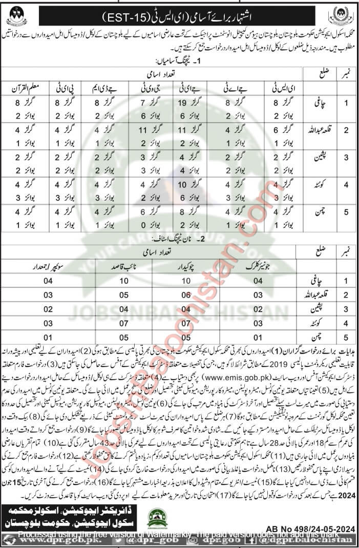 - Department of School Education Government of Balochistan reserves the right to reduce, increase or eliminate the number of postsÂ
