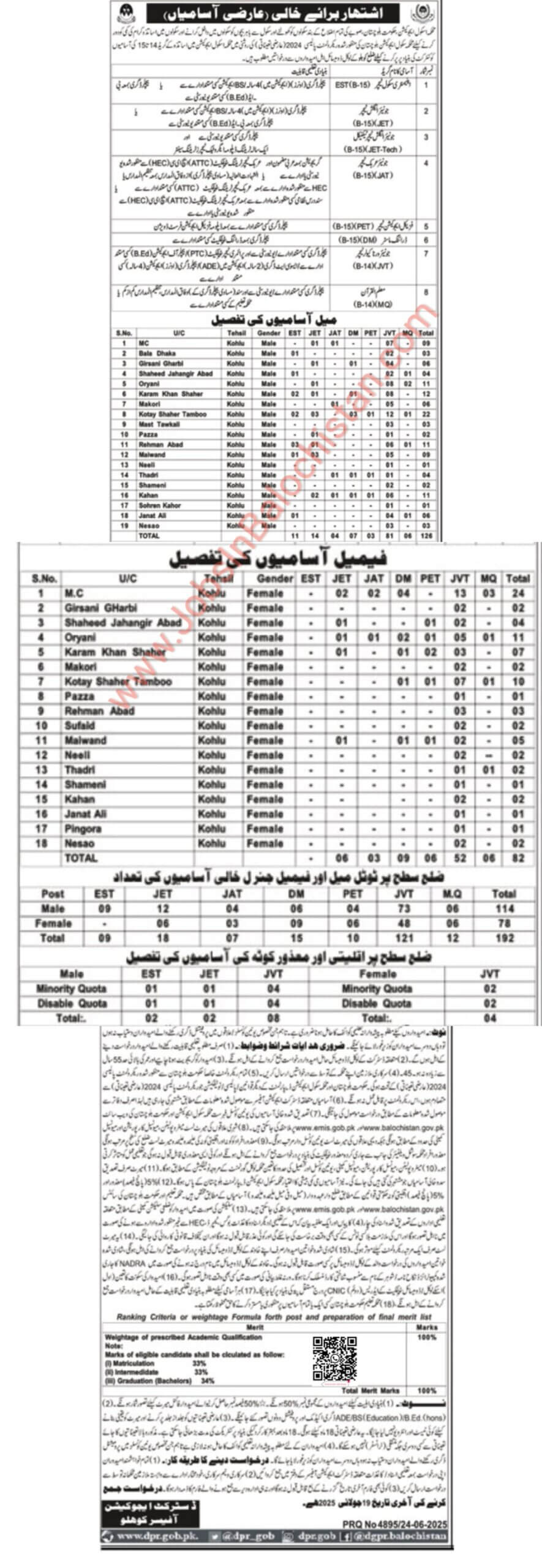 The Education Department of District Khulu, Balochistan, invites applications for various teaching jobs in schools across the district UC. These posts are temporary, (may extendable permanent) and candidates from Khulu are encouraged to apply. Applicants must meet the required educational qualifications and eligibility criteria to be considered for these roles.