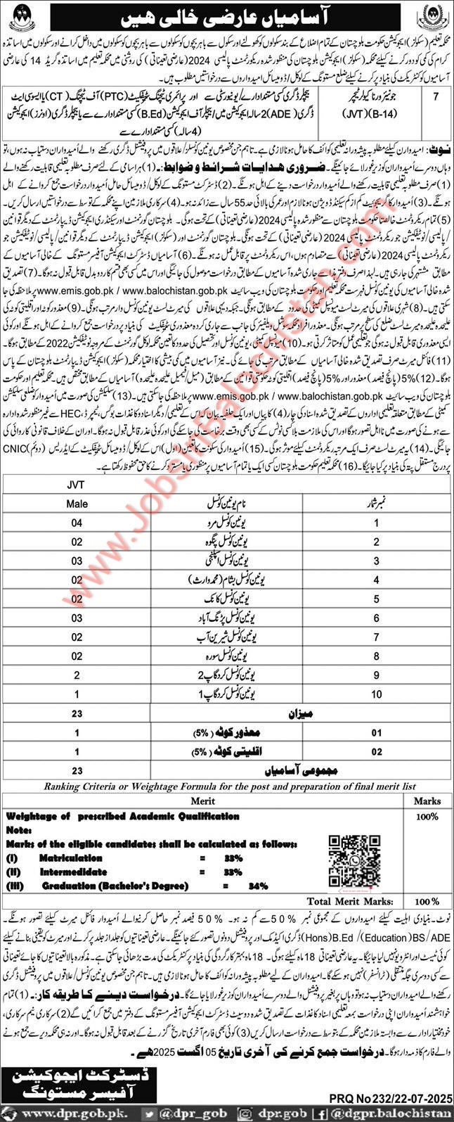 - Send your documents to the office of 👉 District Education Department Mastung.