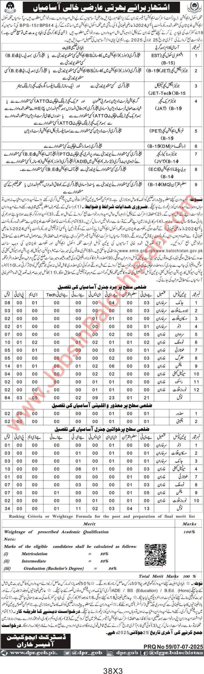 The Education Department of District Kharan, Balochistan, invites applications for various teaching jobs in schools across the district UC. These posts are temporary, (may extendable permanent) and candidates from District Kharan are encouraged to apply. Applicants must meet the required educational qualifications and eligibility criteria to be considered for these roles.