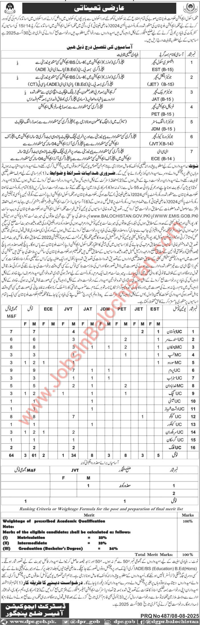 The Education Department of District Panjgoor, Mekran Division Balochistan, invites applications for various teaching jobs in schools across the district UC. These posts are temporary, (may extendable permanent) and candidates from Punjgoor are encouraged to apply. Applicants must meet the required educational qualifications and eligibility criteria to be considered for these roles.