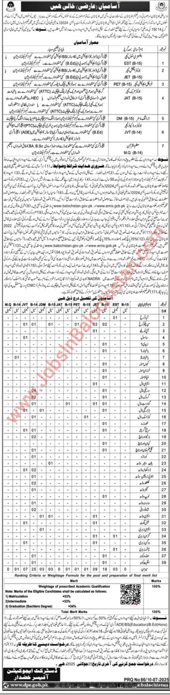 The School Teaching Education Department of District Khuzdar, Balochistan, invites applications for various teaching jobs in schools across the district UC. These posts are temporary, (may extendable permanent) and candidates from Khuzdar are encouraged to apply. Applicants must meet the required educational qualifications and eligibility criteria to be considered for these roles.