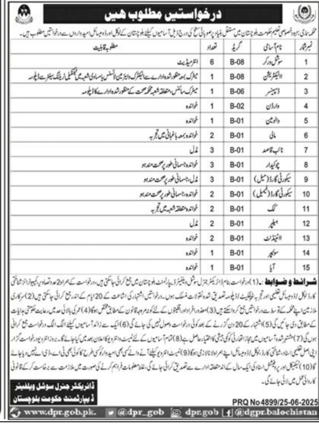 Social Welfare Department Balochistan jobs for 2025. These vacancies have been published in the Local Newspaper and are open to eligible candidates from Balochistan. The hiring process will adhere to departmental policies to ensure fairness and transparency. If you meet the eligibility criteria, you can apply for the positions listed in the advertisement below.