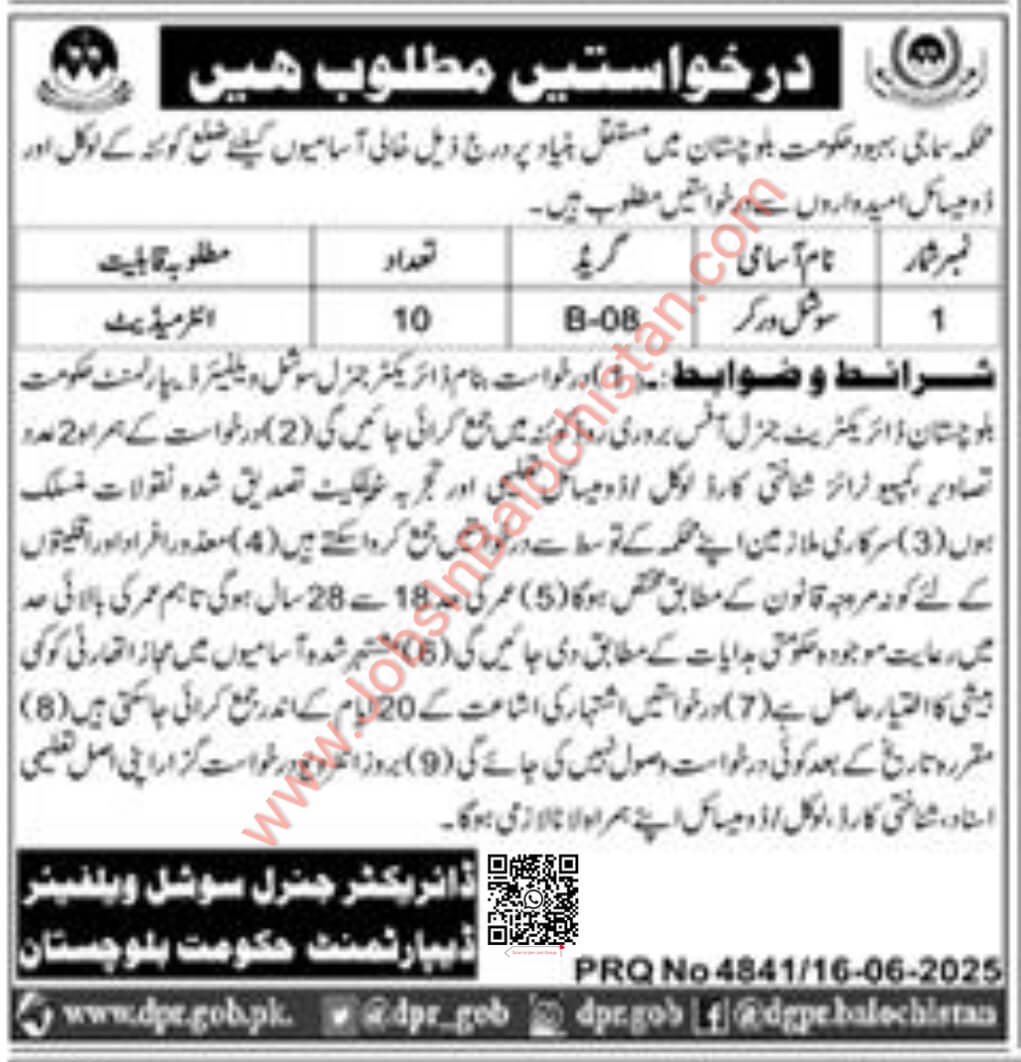 Social Welfare Department, Balochistan jobs for 2025 in District/Division Quetta. These vacancies have been published in the Local Newspaper and are open to eligible candidates from Balochistan. The hiring process will adhere to departmental policies to ensure fairness and transparency. If you meet the eligibility criteria, you can apply for the positions listed in the advertisement below.