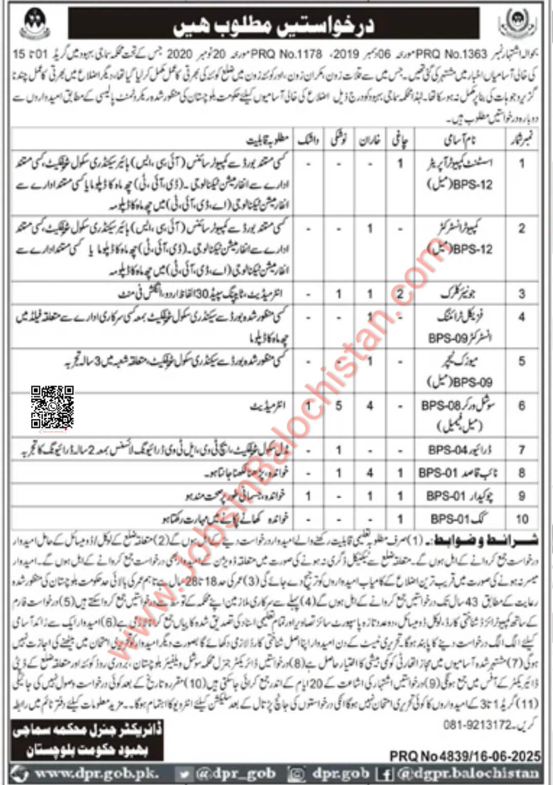 Only Domicile holder of Balochistan Rakhshan Division (Chaghi, Kharan, Noshki,Washuk) can apply. In addition, candidates must meet the educational and experience requirements mentioned in the job description. As a result, only eligible applicants will be considered.