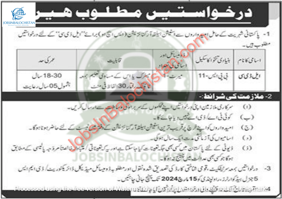 Health Station Organization has jobs in Balochistan. The vacancies have been announced in Balochistan through the website, and Jang Newspaper. The hiring process will follow departmental guidelines. Candidates from Balochistan who satisfy the requirements can now apply for the vacancies that are listed in the advertisement, Female, below. After the recruitment process is complete, eligible applicants can apply using the organization’s established procedure and receive these Jobs in Balochistan in 2024