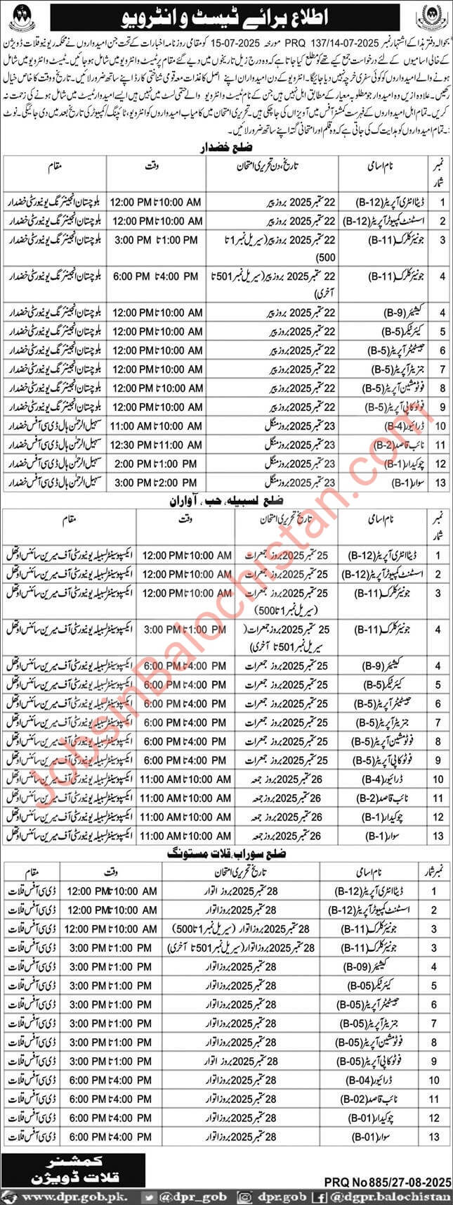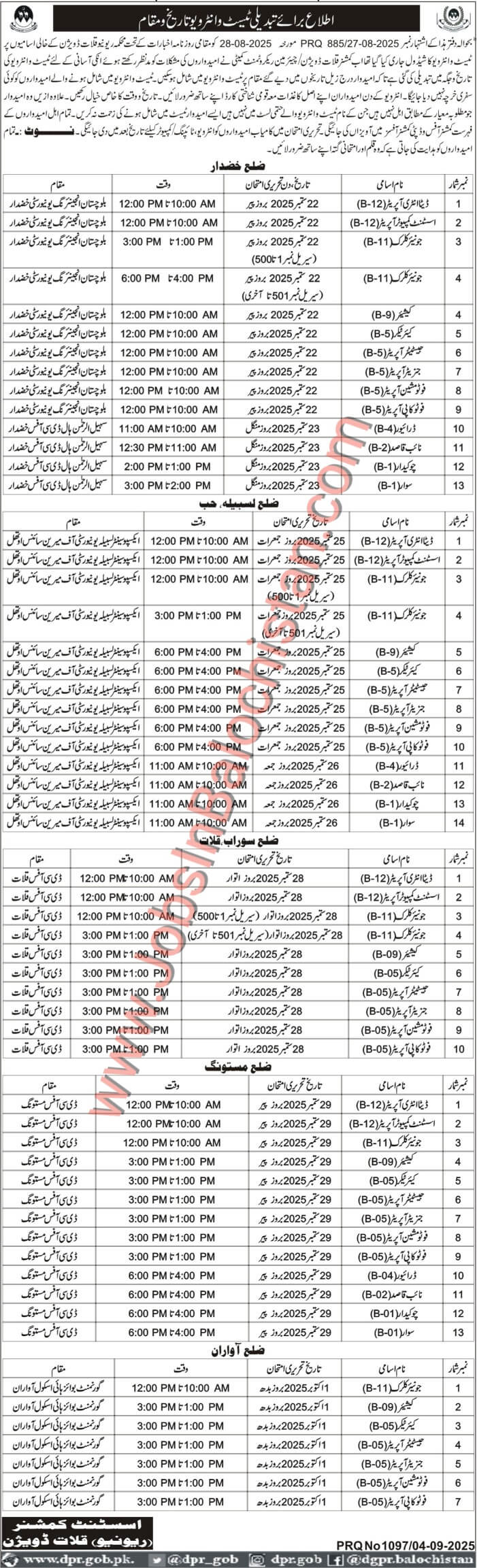 Candidates who have applied for the Revenue Department Balochistan View Full Job Advertisement (PRQ 137/14-07-2025)Â for following vacancies in Kalat Division Balochistan, is hereby informed that their Interview call, Jobs In Balochistan will be conducted according to the following schedule:
