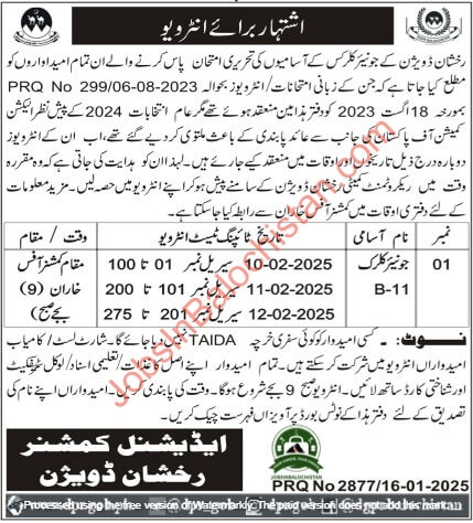 Candidates who have applied under advertisement no. PRQ 118/17-07-2023, 2189/13-12-2024 and 2249/05-12-2024 for following vacancies in District Chaman Balochistan, is hereby informed that their Physical and Written test & Interview call Jobs In Balochistan will be conducted according to the following schedule: