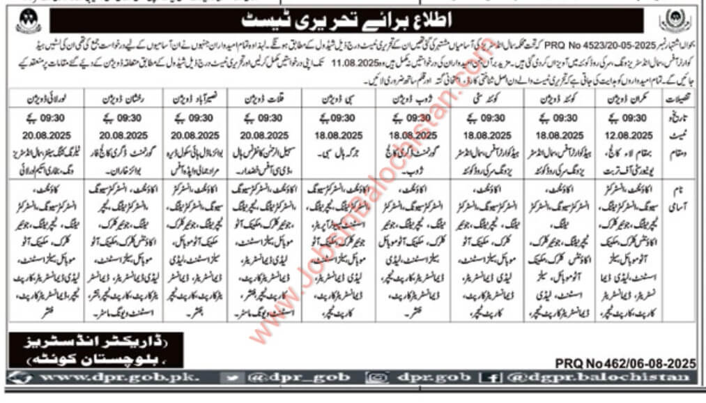 For Small Industries Wing the Test schedules Jobs In Balochistan 2025 has started the vacancies process for the candidates. Therefore, all such relatives who have submitted their applications for the vacancies, should attend the test for the following schedule according to their educational qualifications and eligibility and with the required Documents
