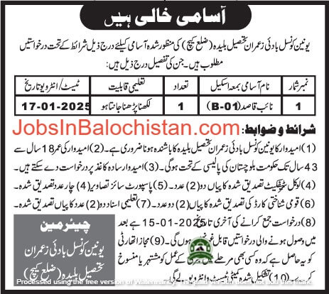 ToggleUnion Council UC Buleda District Kech Jobs 2025