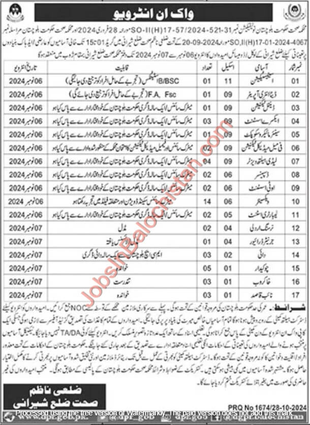 - Applications must be submitted during interview to the District Health Office in Sheerani before 6 to 7 Nov 2024. Interviews will be held according to the schedule provided.