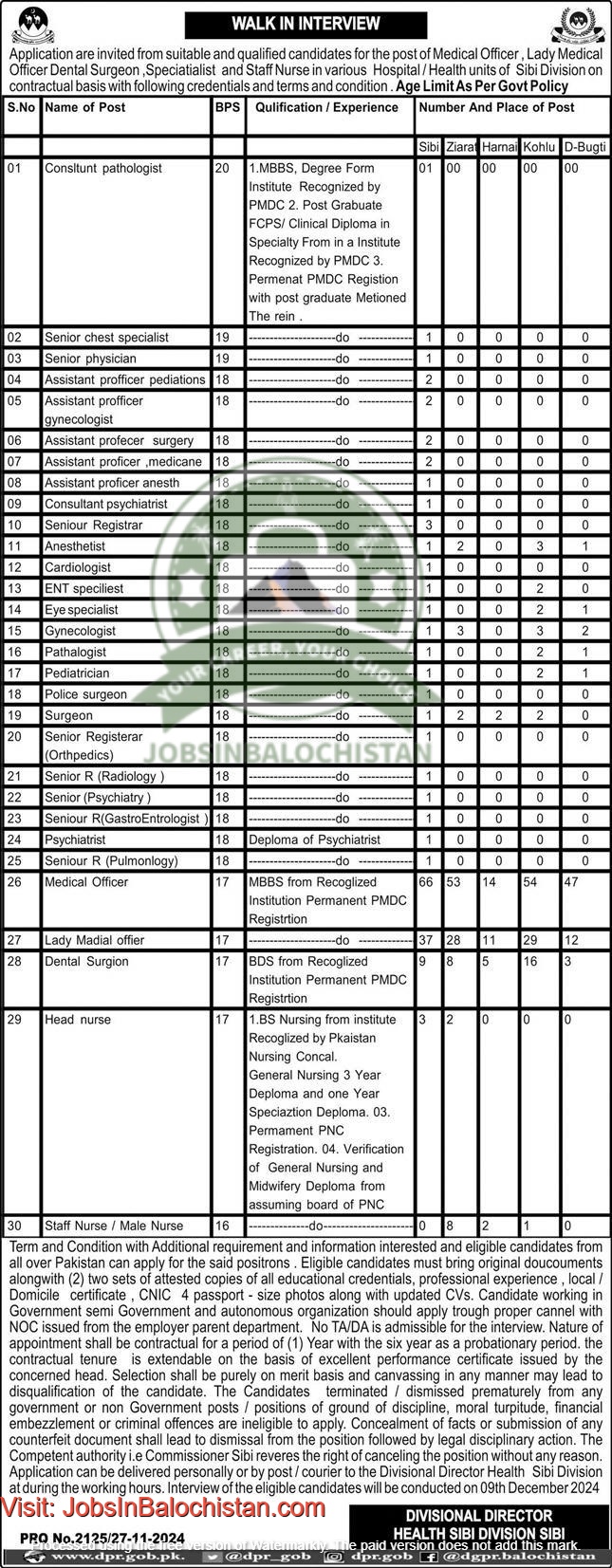 Walkin Interview Health Department Sibi Jobs In Balochistan 2024