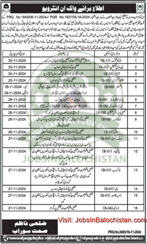 The Health Department walkin & interview call for District Surab Jobs in Balochistan 2024 has started the vacancy process for the candidates. Therefore, all such relatives who have submitted their applications for the vacancies should attend the interview for the following schedule according to their educational qualifications and eligibility and with the required DocumentsÂ