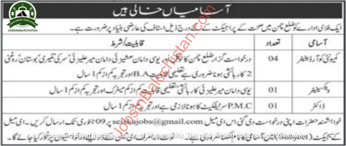 ToggleA Welfare Department District Chaman Jobs in Balochistan
