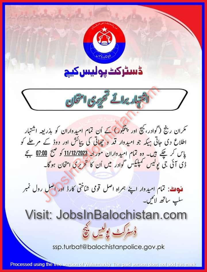All those candidates (Male/Female) of Makran Division District Turbat, Gwadar, Panjgur are notified through advertisements that they have passed the height and Chest and Running measurement. They should come for the road at the following points at 07:00 AM with their original roll number slip dated 11/12/2023 and original national .░░░▒▒▓█